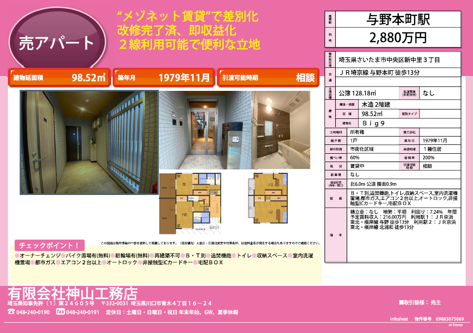 | 最寄り駅 | 川口駅東口出口より徒歩25分 川口オートレース場そば |